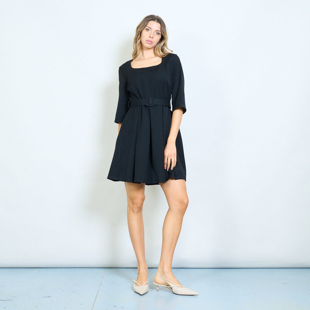 方领系带短袖迷你连衣裙批发