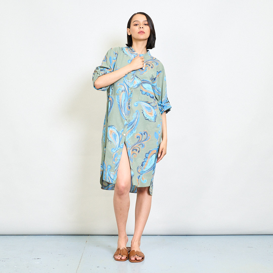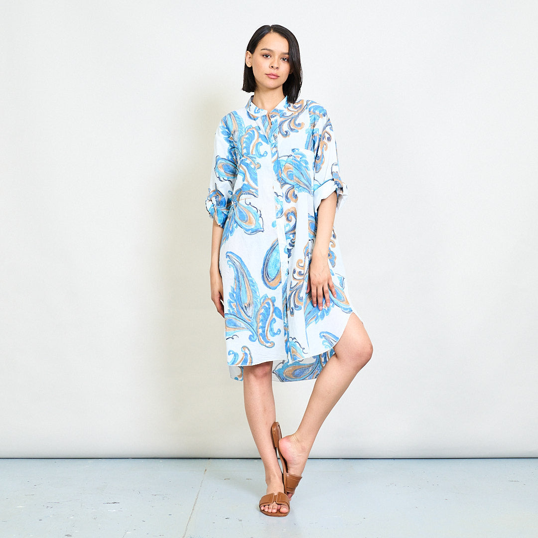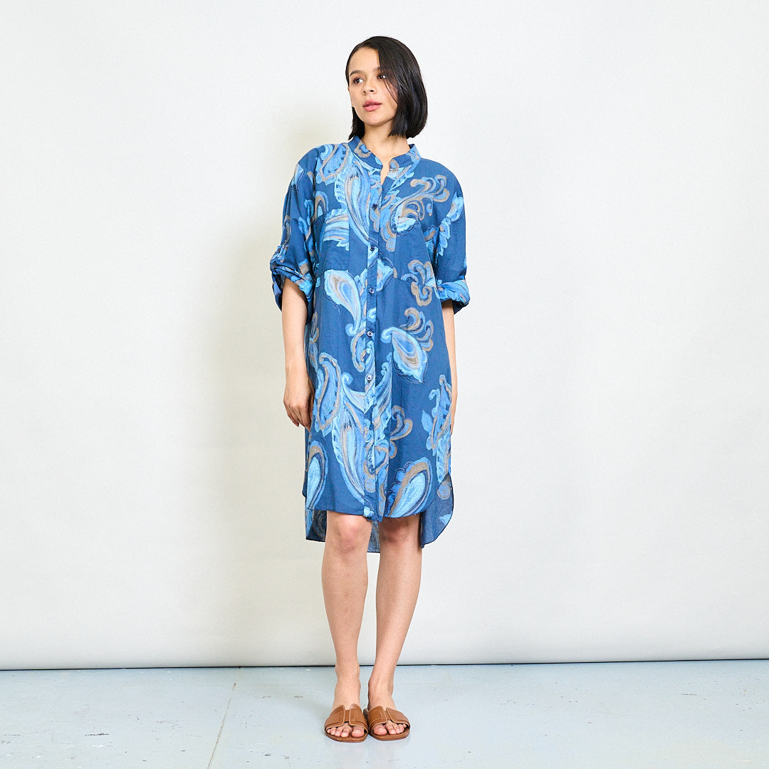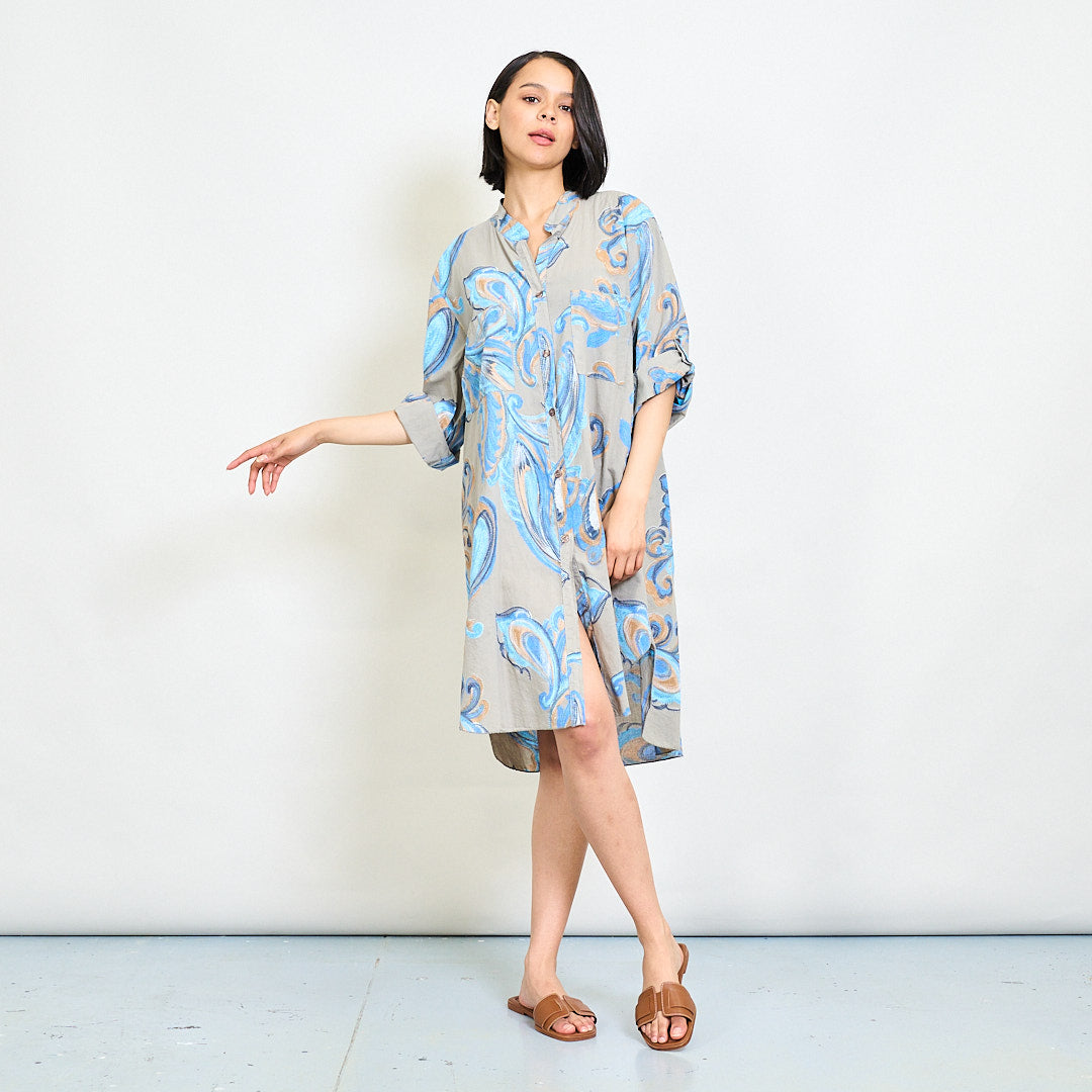 巴洛克漩涡抽象印刷放松衬衫礼服批发