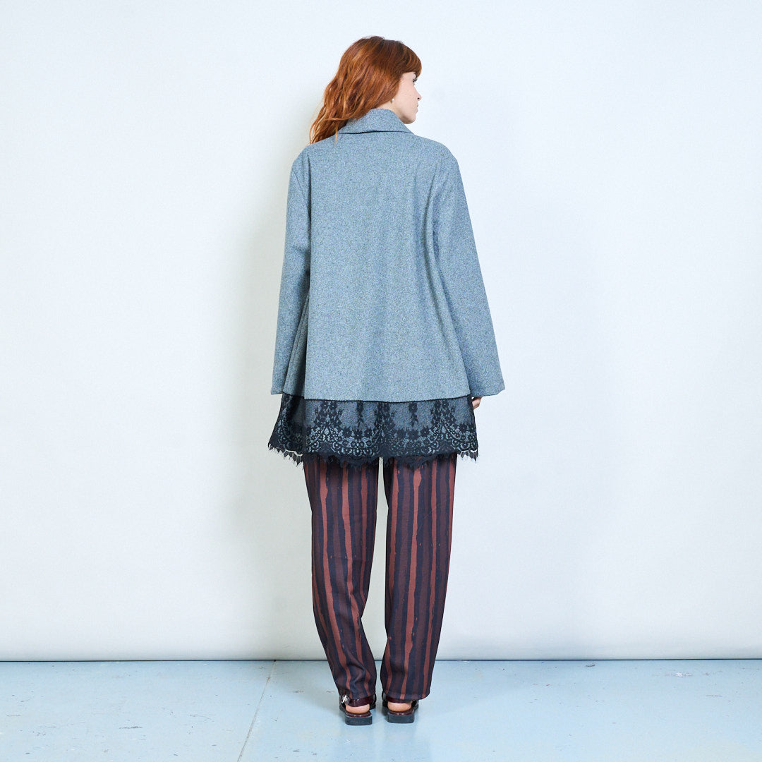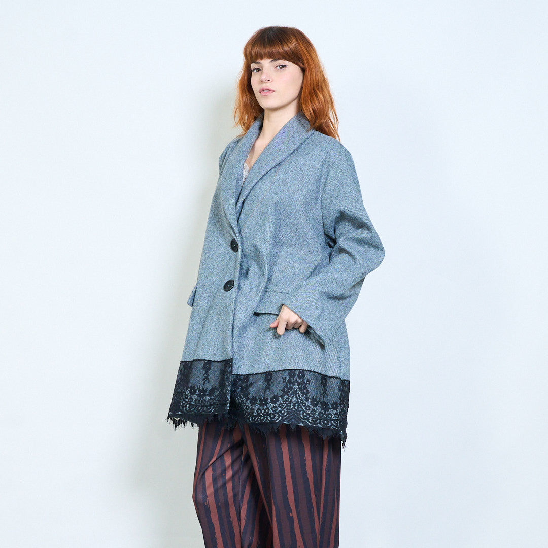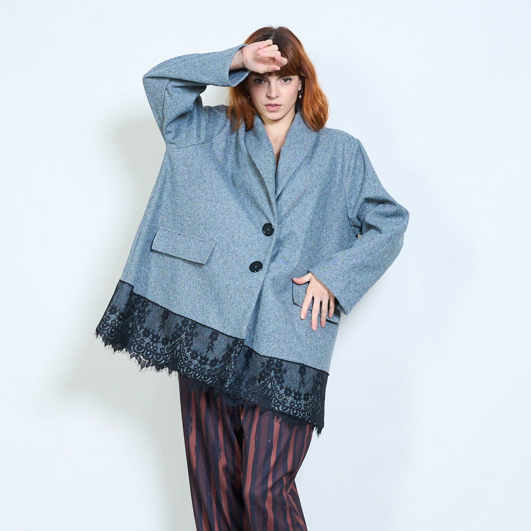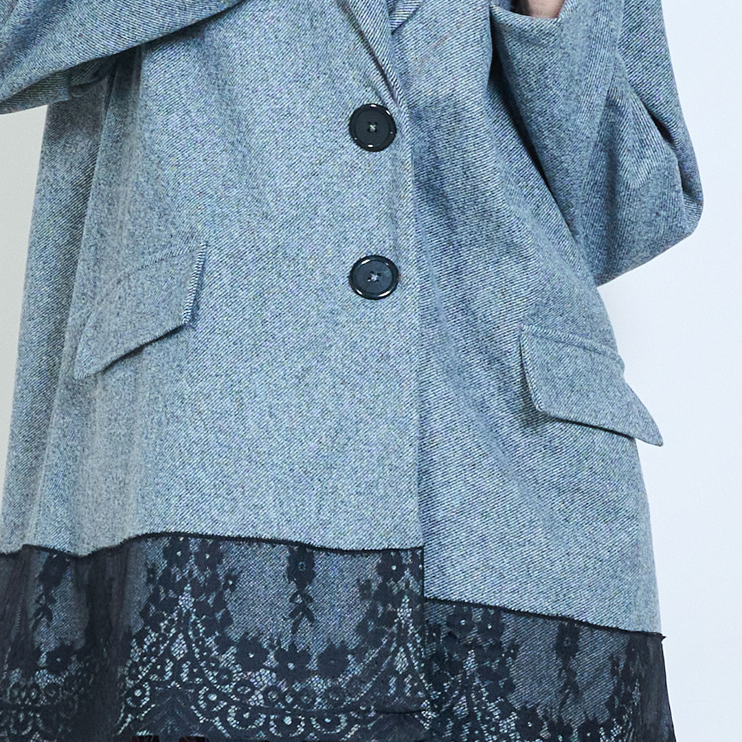 - 蕾丝下摆细节增添对比效果和女性化的分层效果