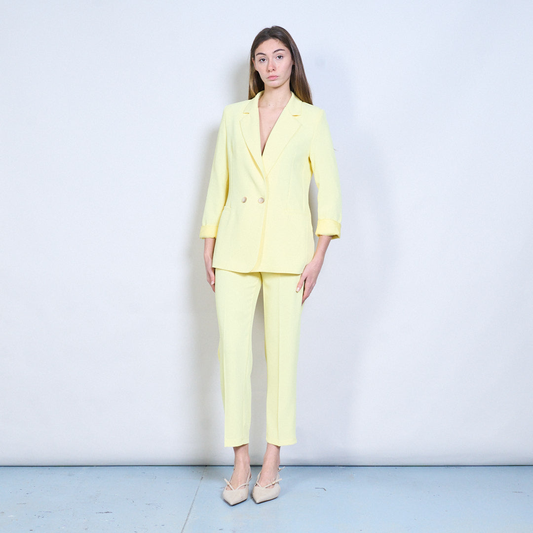 定制双排扣西装外套直筒裤套装批发