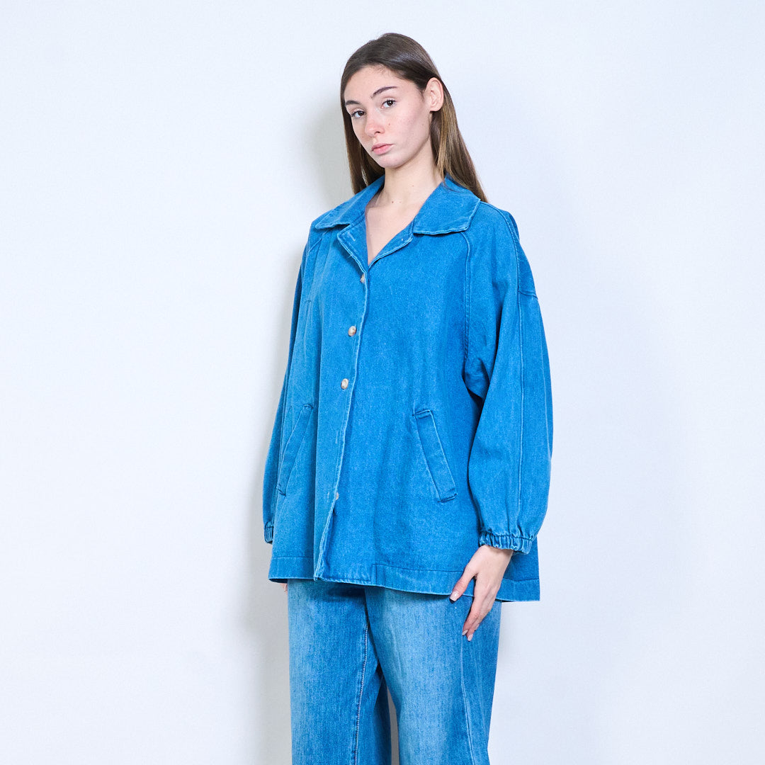 牛仔宽松领口纽扣夹克批发