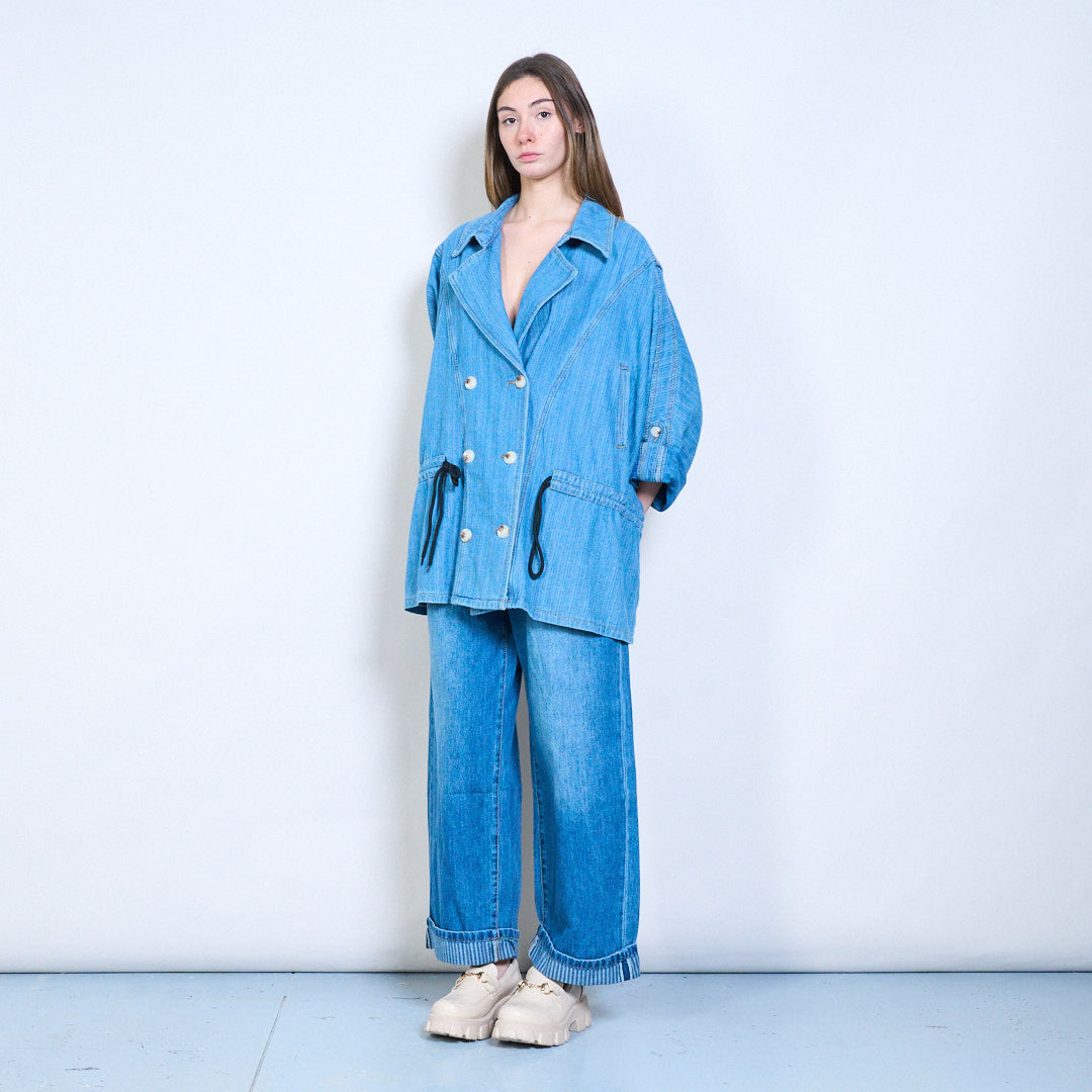 宽松版型牛仔双排扣立领夹克批发