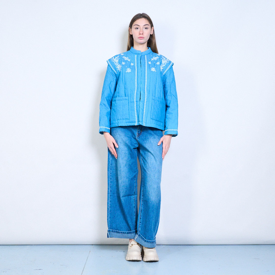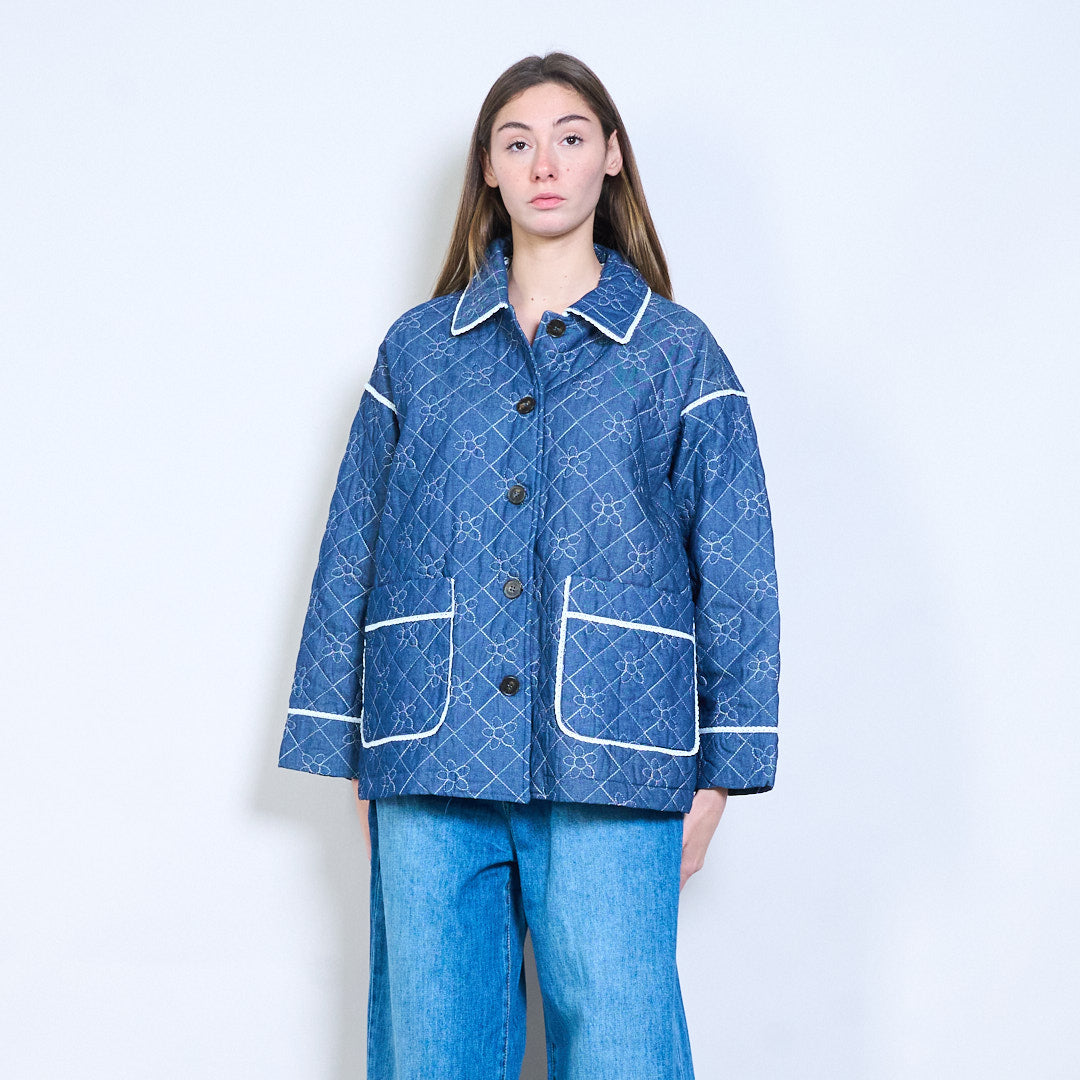 花卉刺绣宽松绗缝夹克批发