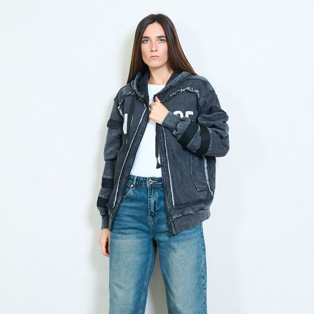 对比度的衣领和袖口公用事业牛仔夹克批发
