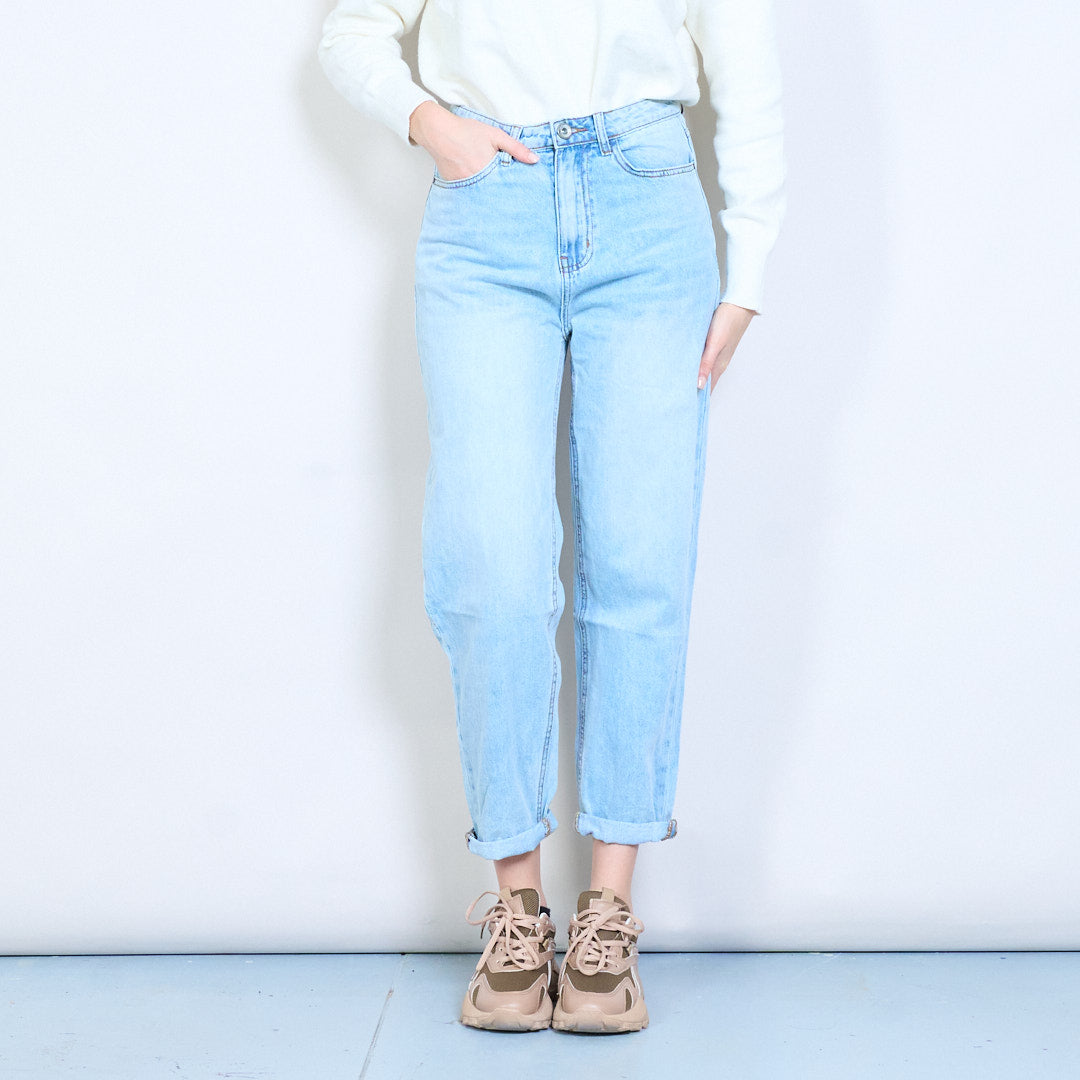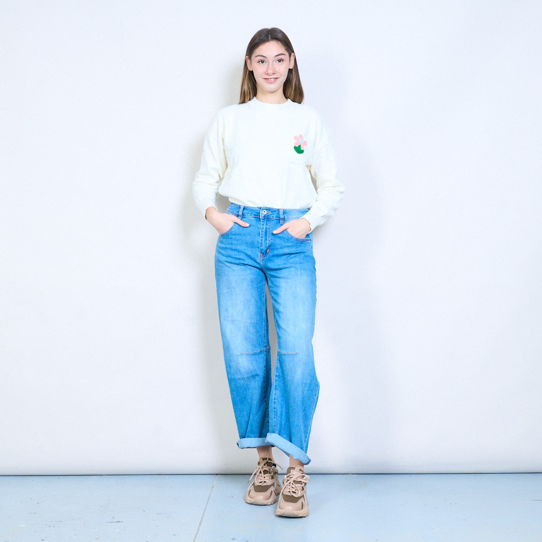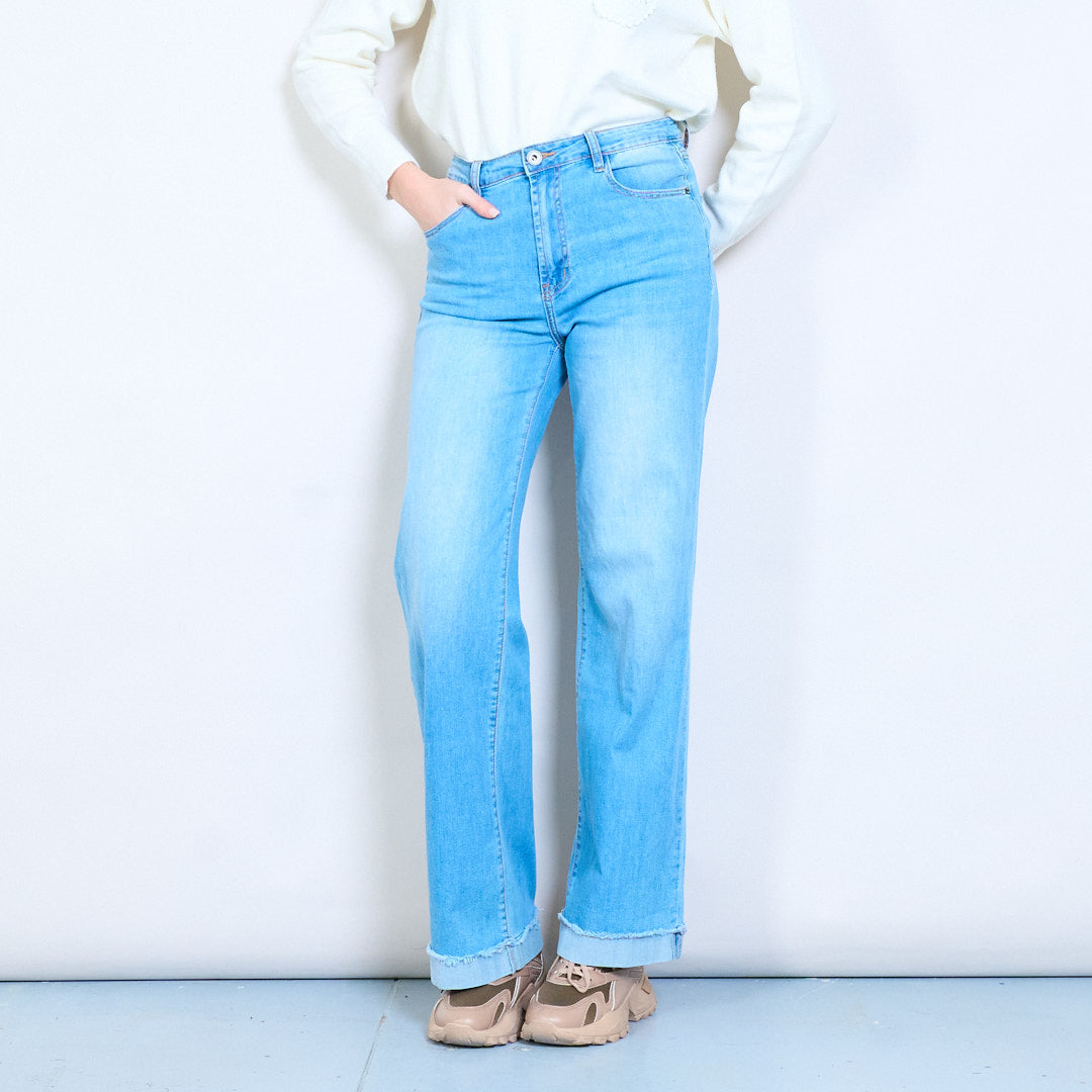 高腰宽松直筒翻边脚踝日常牛仔裤批发