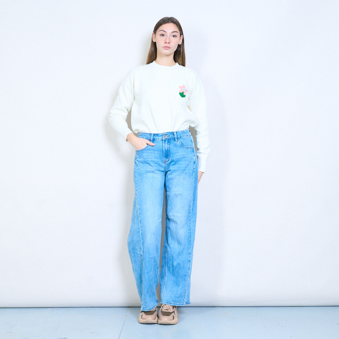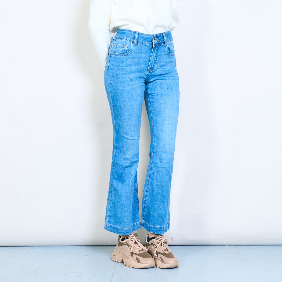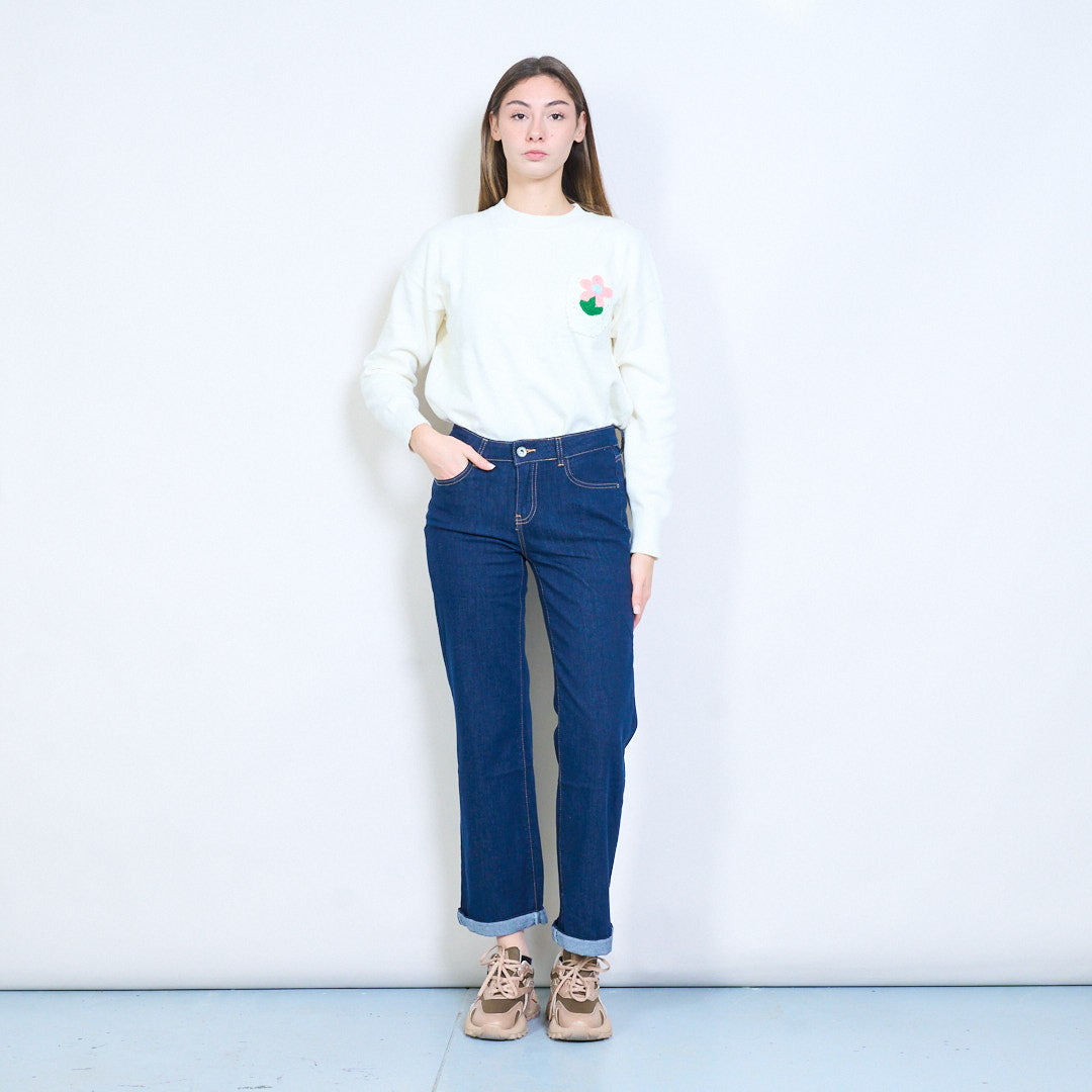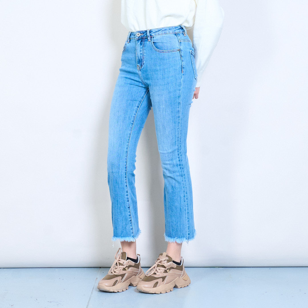 高腰宽松直筒翻边脚踝日常牛仔裤批发