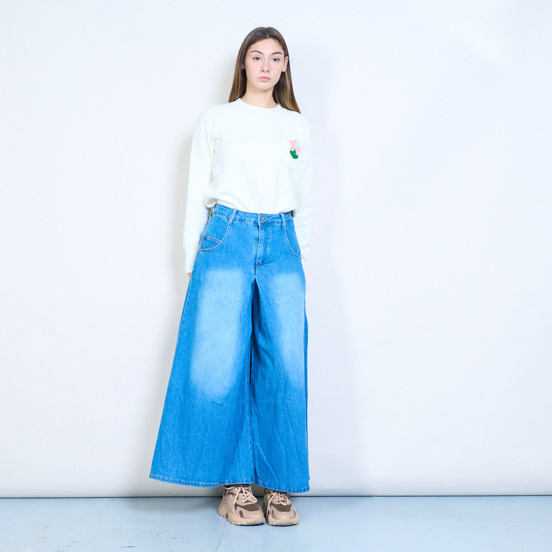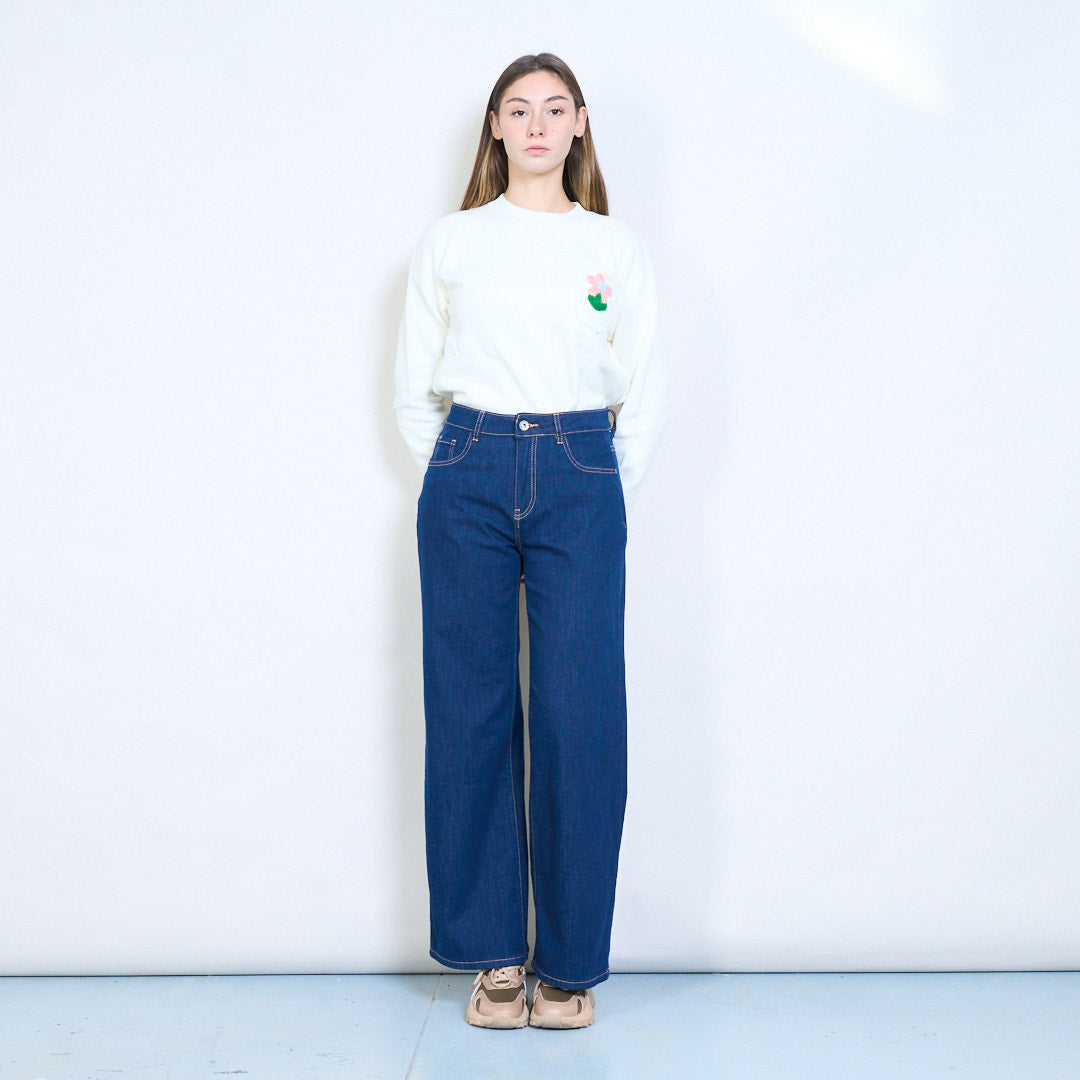 高腰宽幅秋季宽松廓形牛仔裤批发