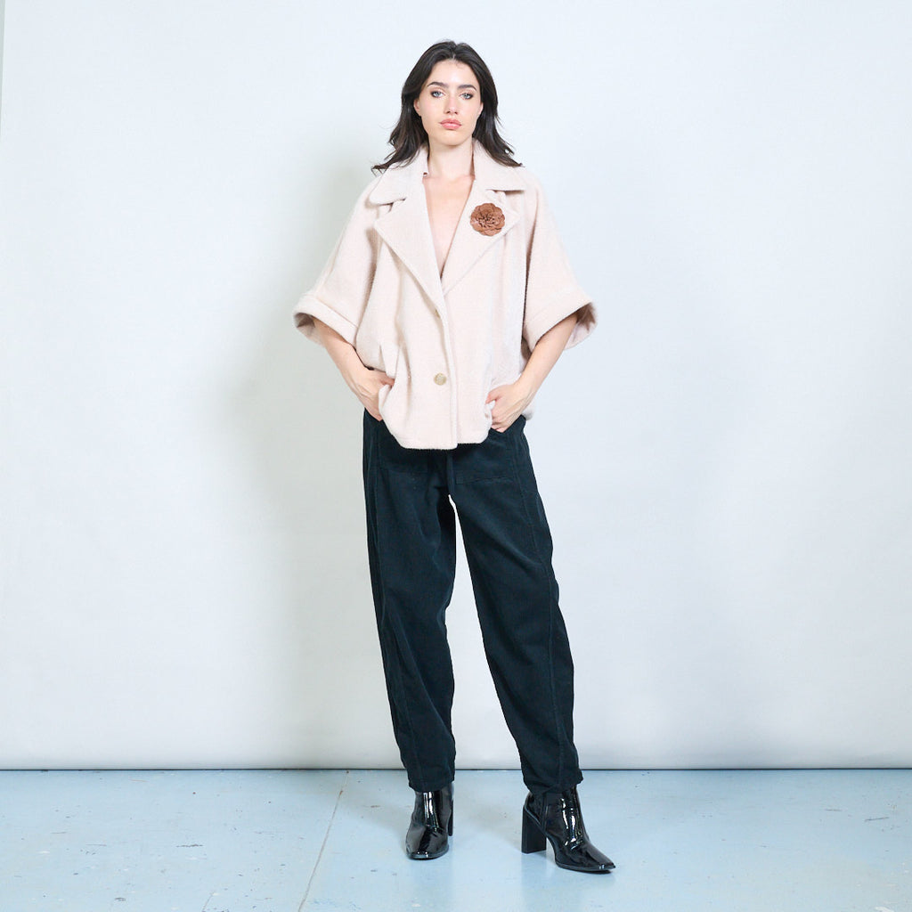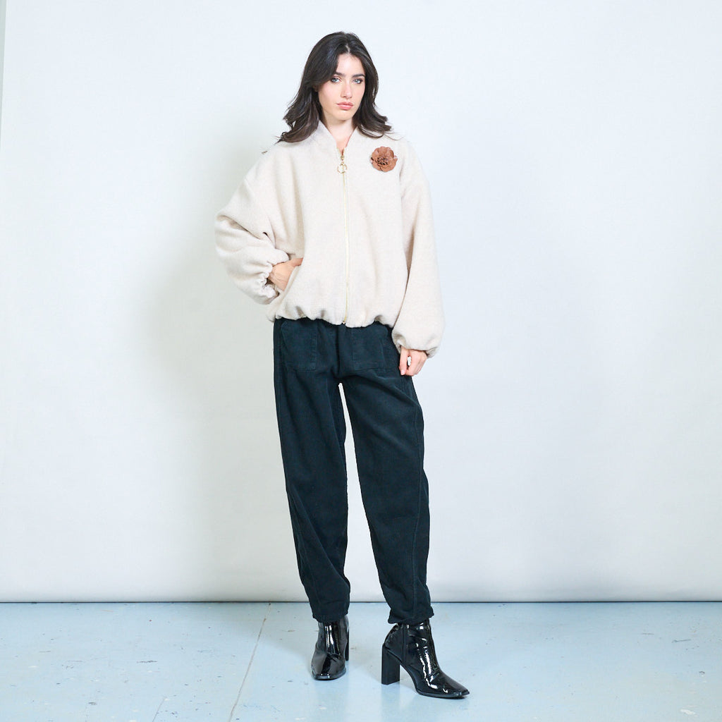 极简主义轰炸机风格的拉链夹克和花胸针细节批发