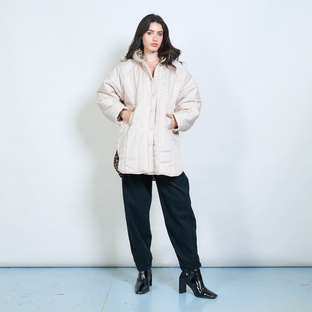 有线编织纹理的人造皮草夹克与超大翻领批发