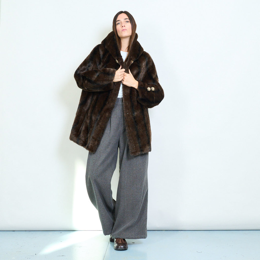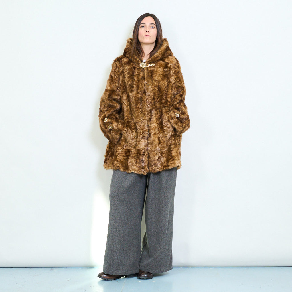 Elegant oversized faux fur coat with jeweled button accents wholesale