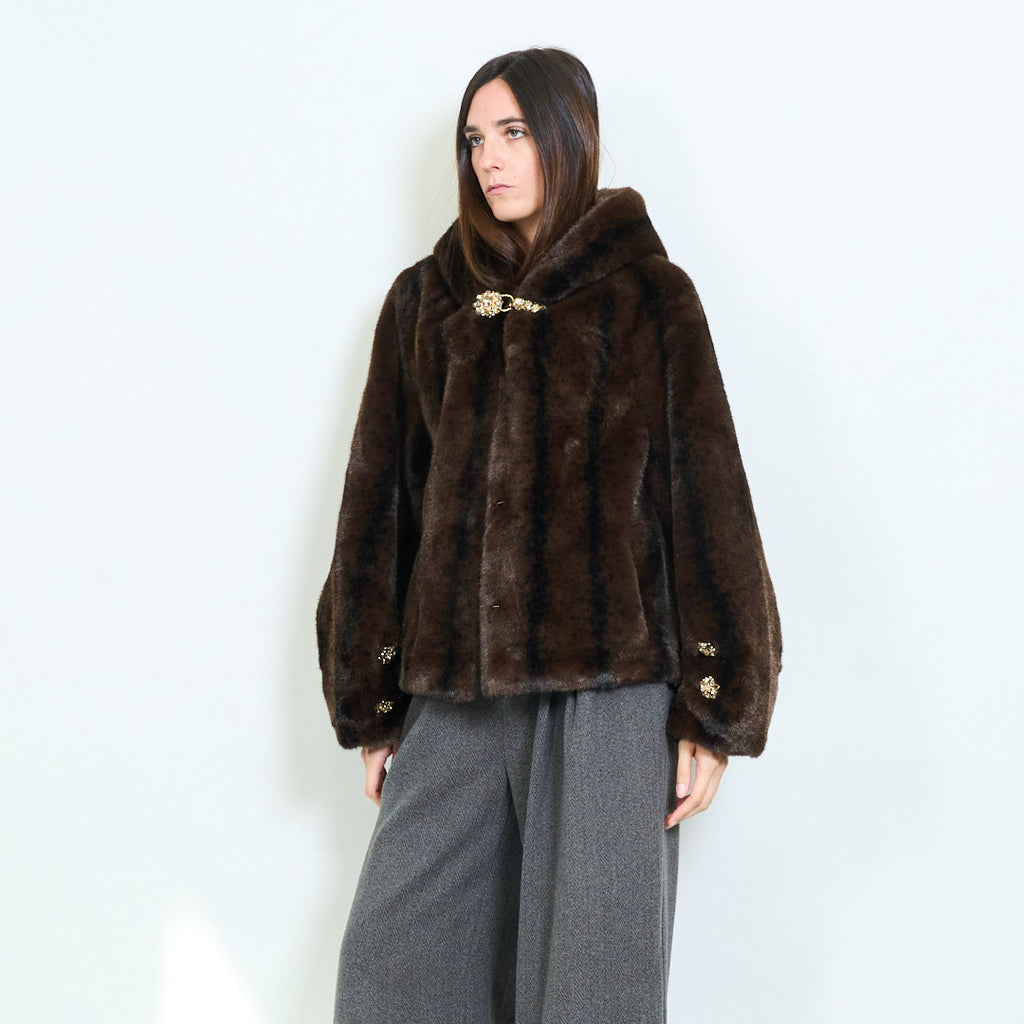 Chic cropped faux fur coat with jeweled clasp detailing wholesale