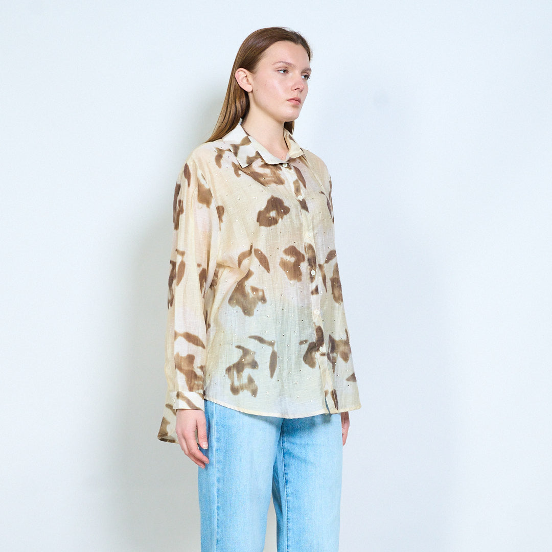 Animalia 水钻领子正面纽扣长袖衬衫批发