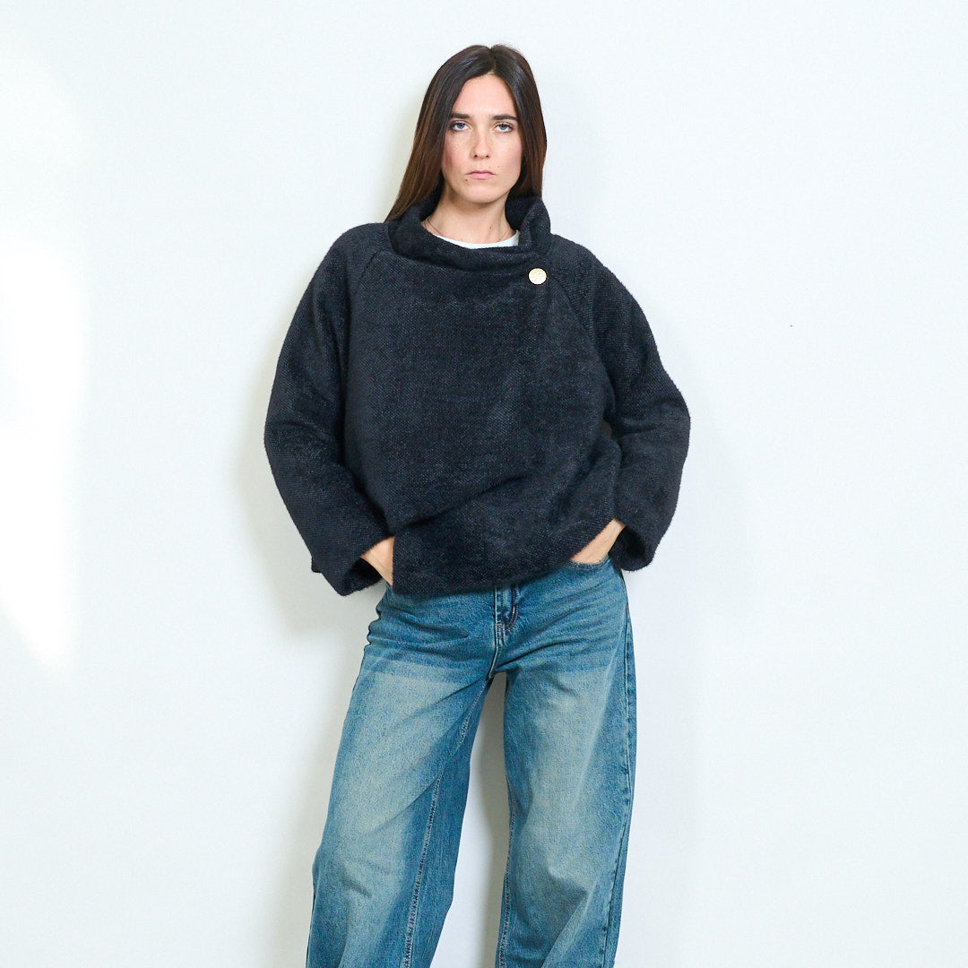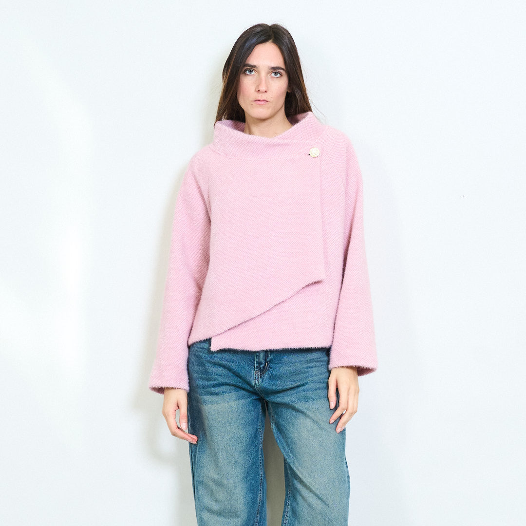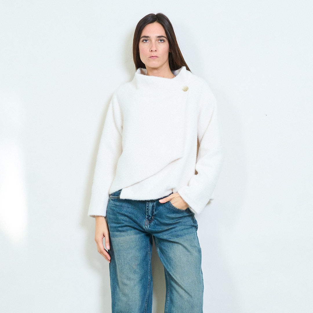 不对称垂坠纽扣细节针织毛衣批发