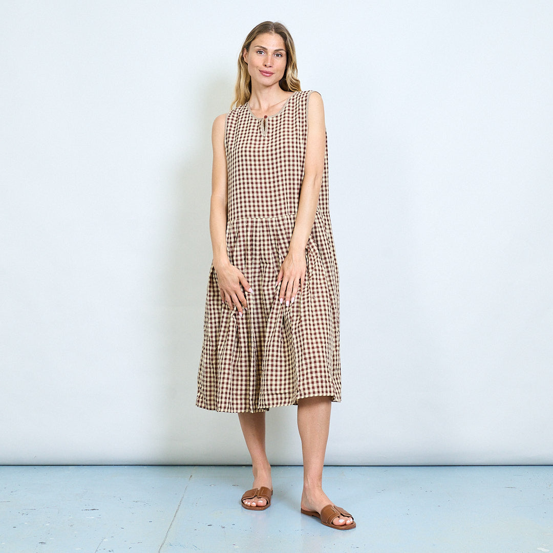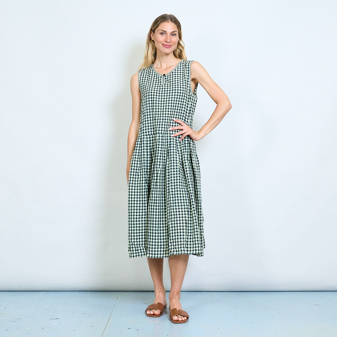 方格汉检查无袖聚集的夏季礼服批发