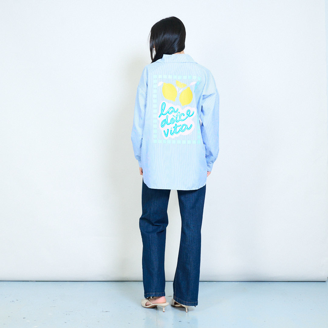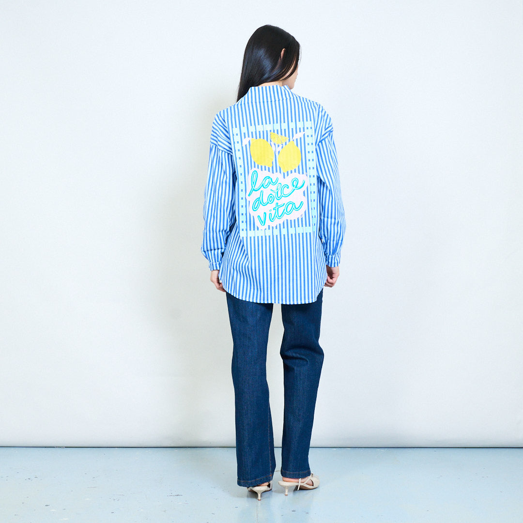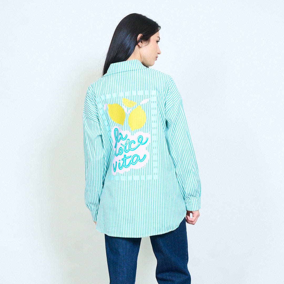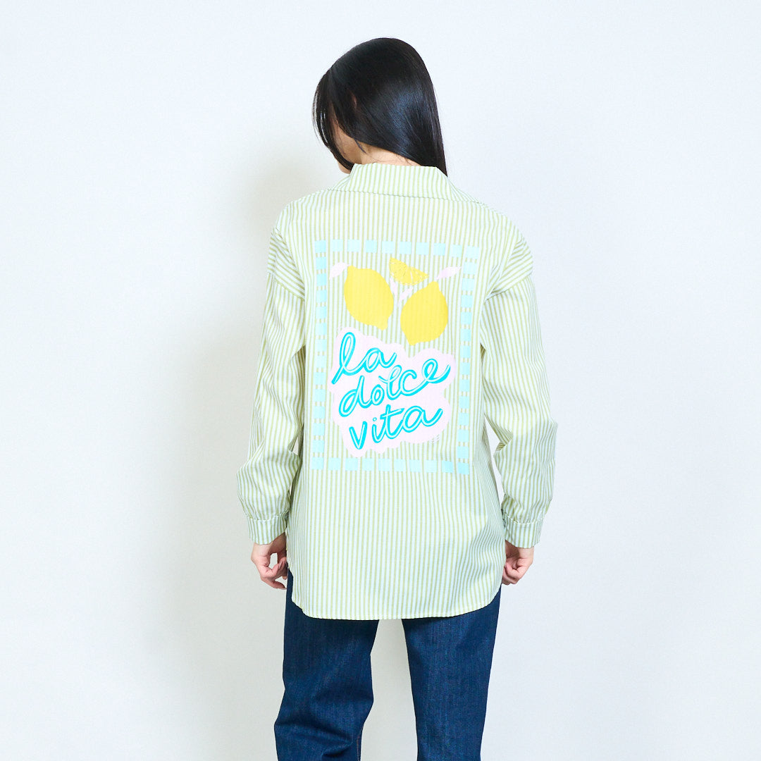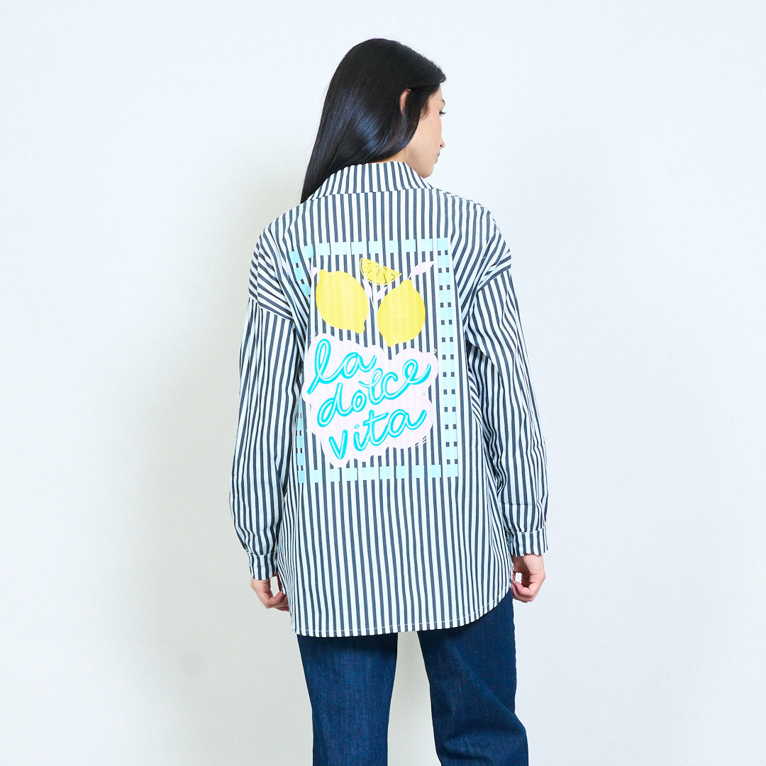 竖条纹柠檬图案“La dolce vita”印花超大衬衫衬衫批发