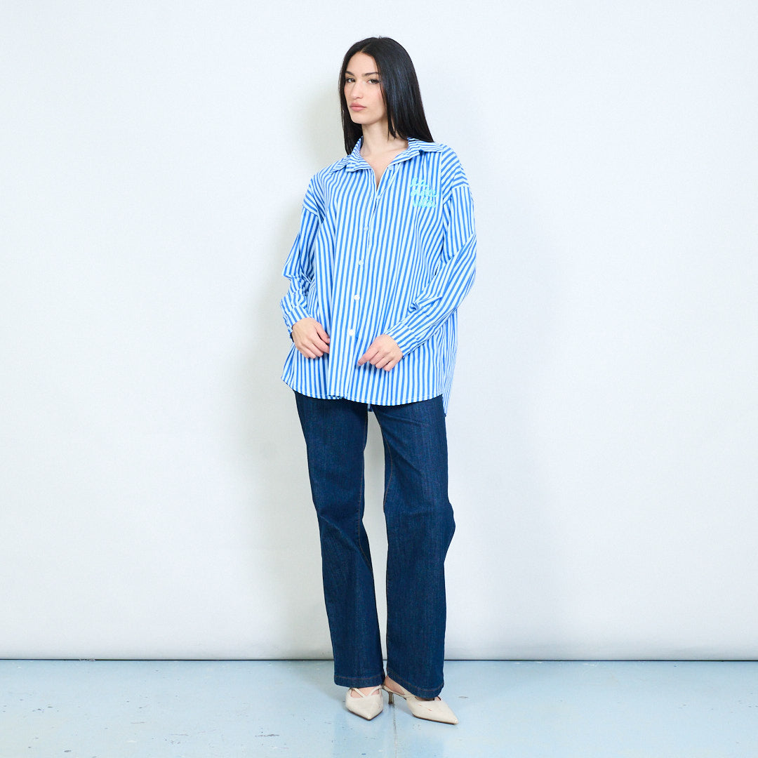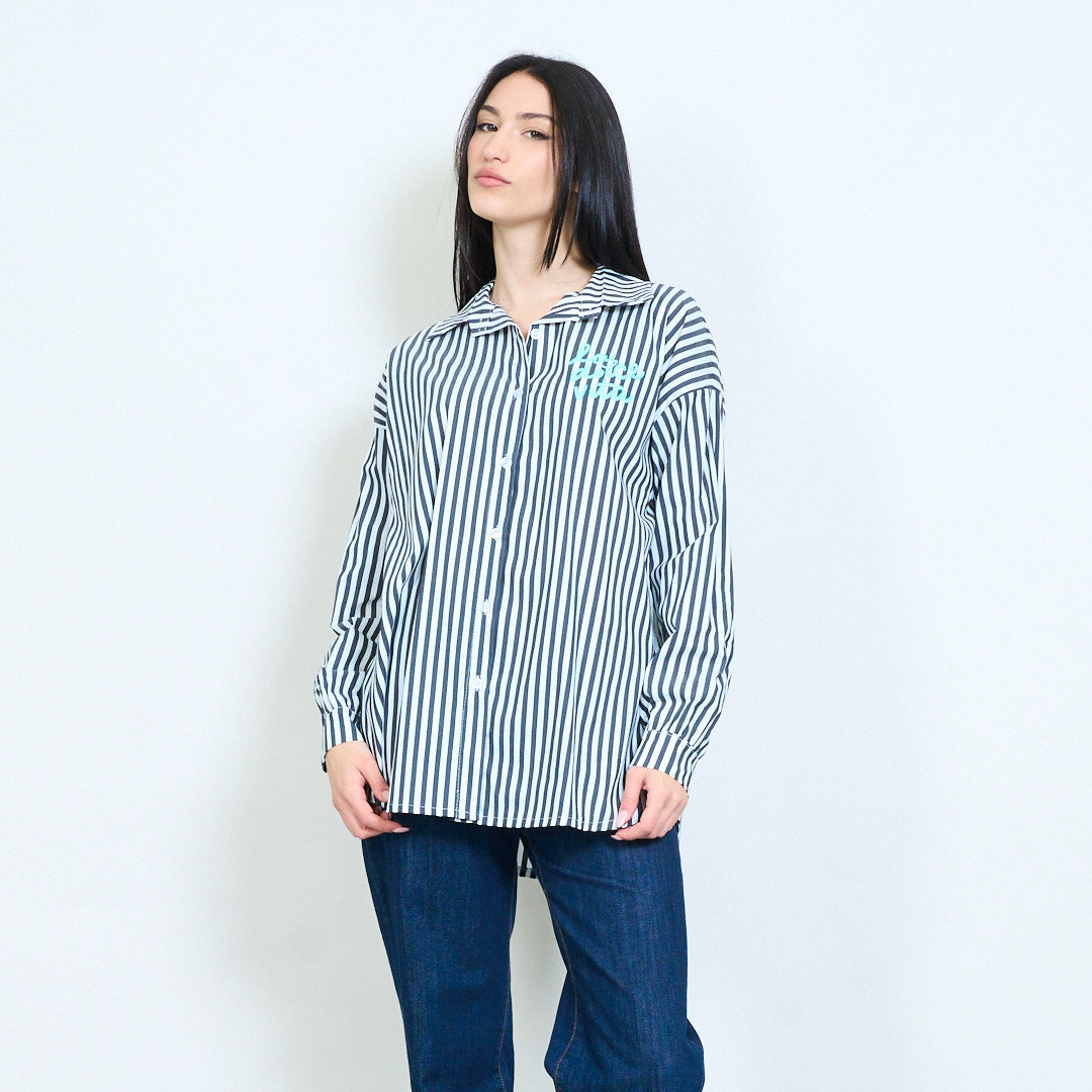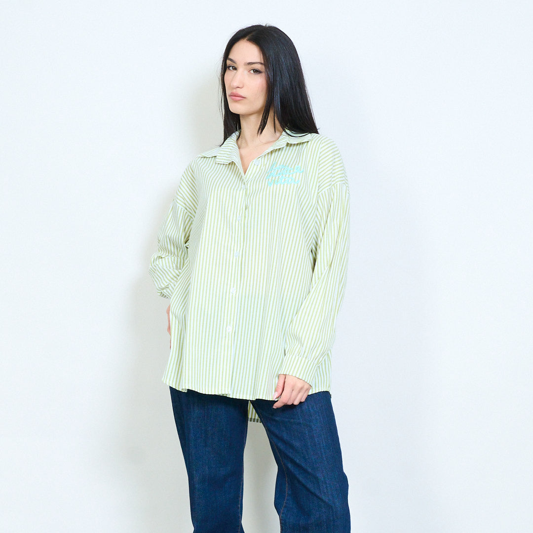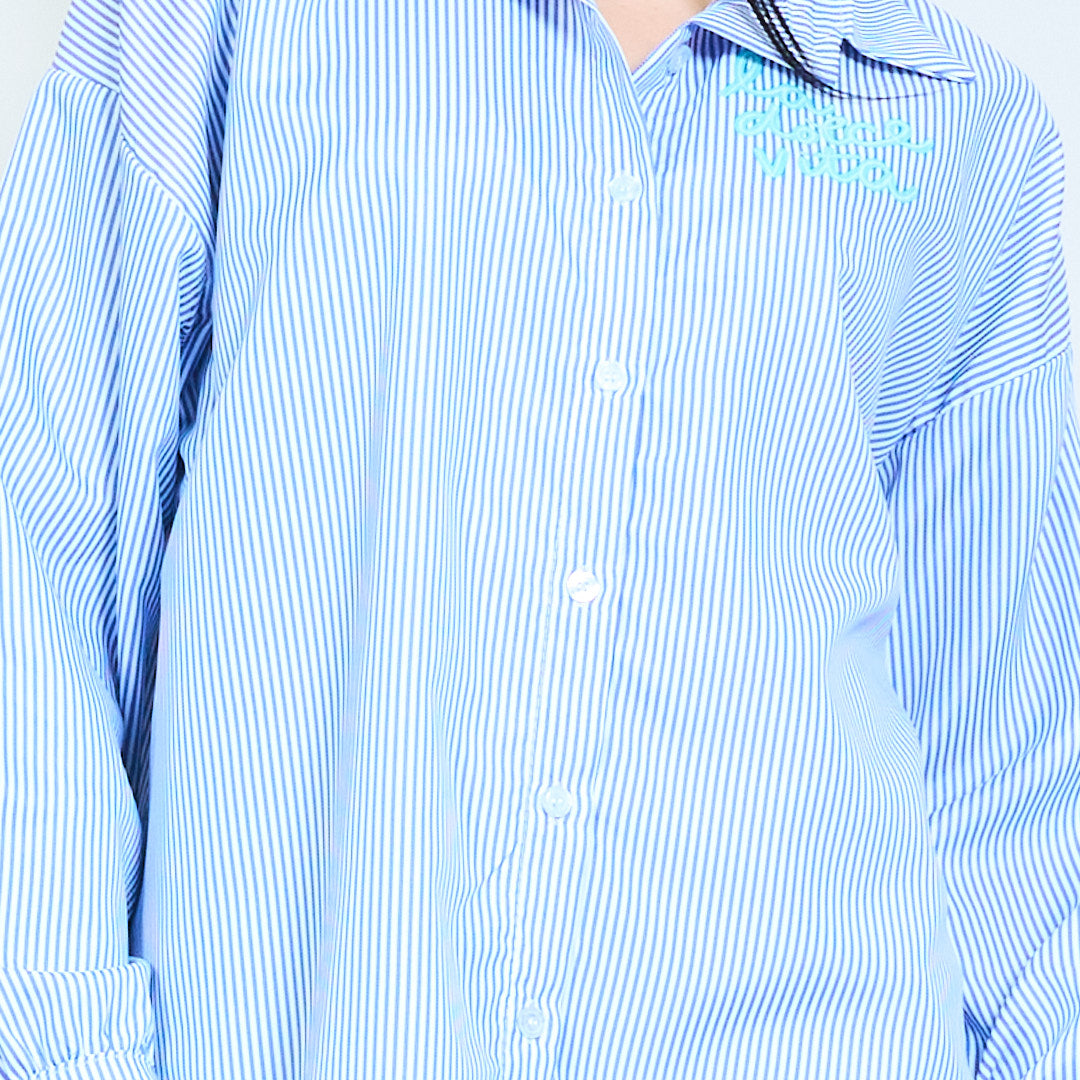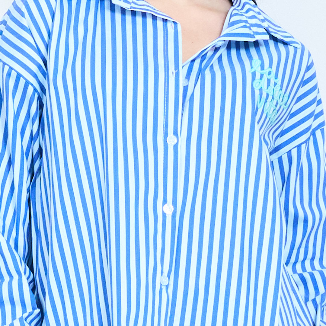 竖条纹柠檬图案“La dolce vita”印花超大衬衫衬衫批发