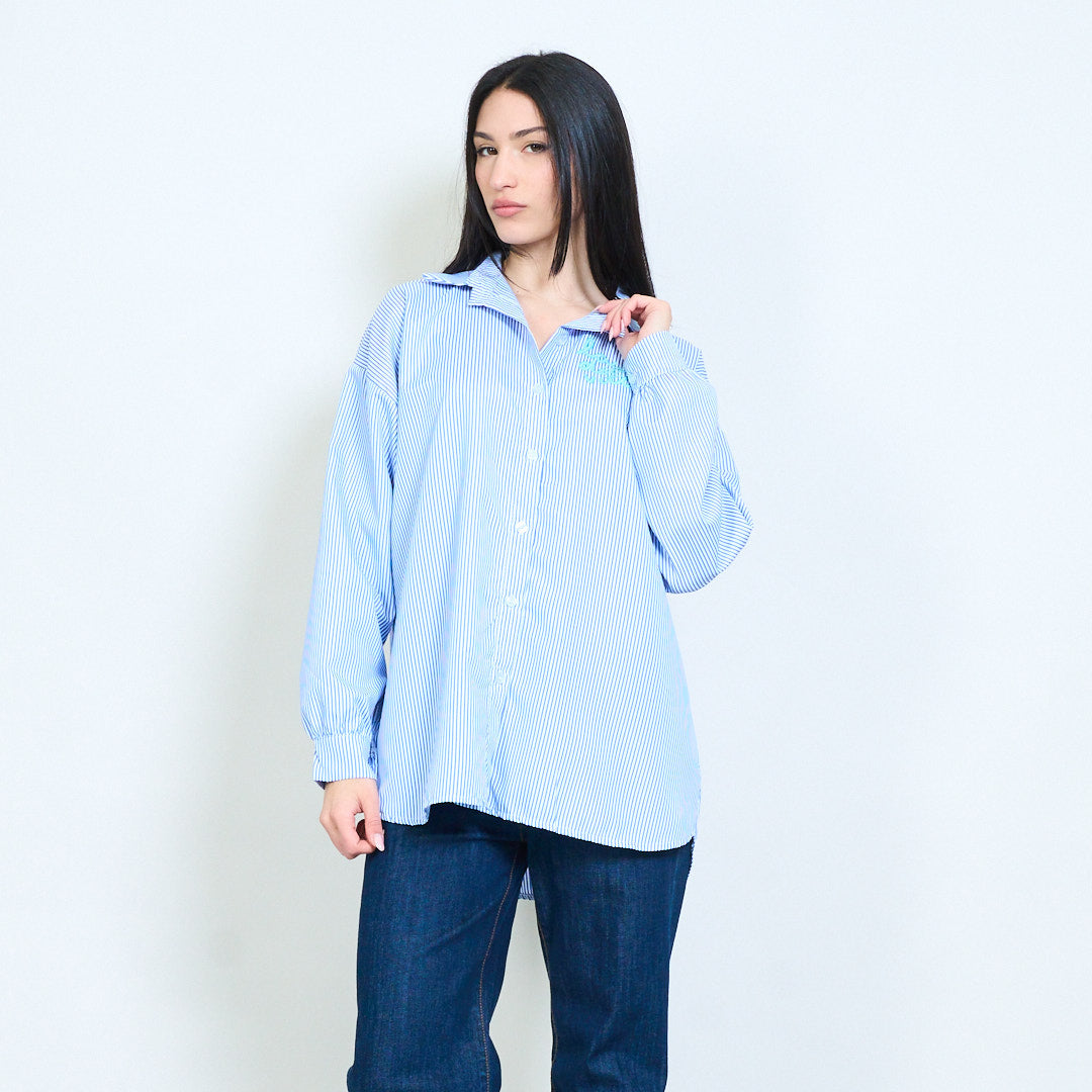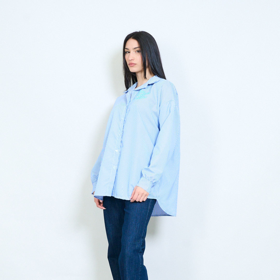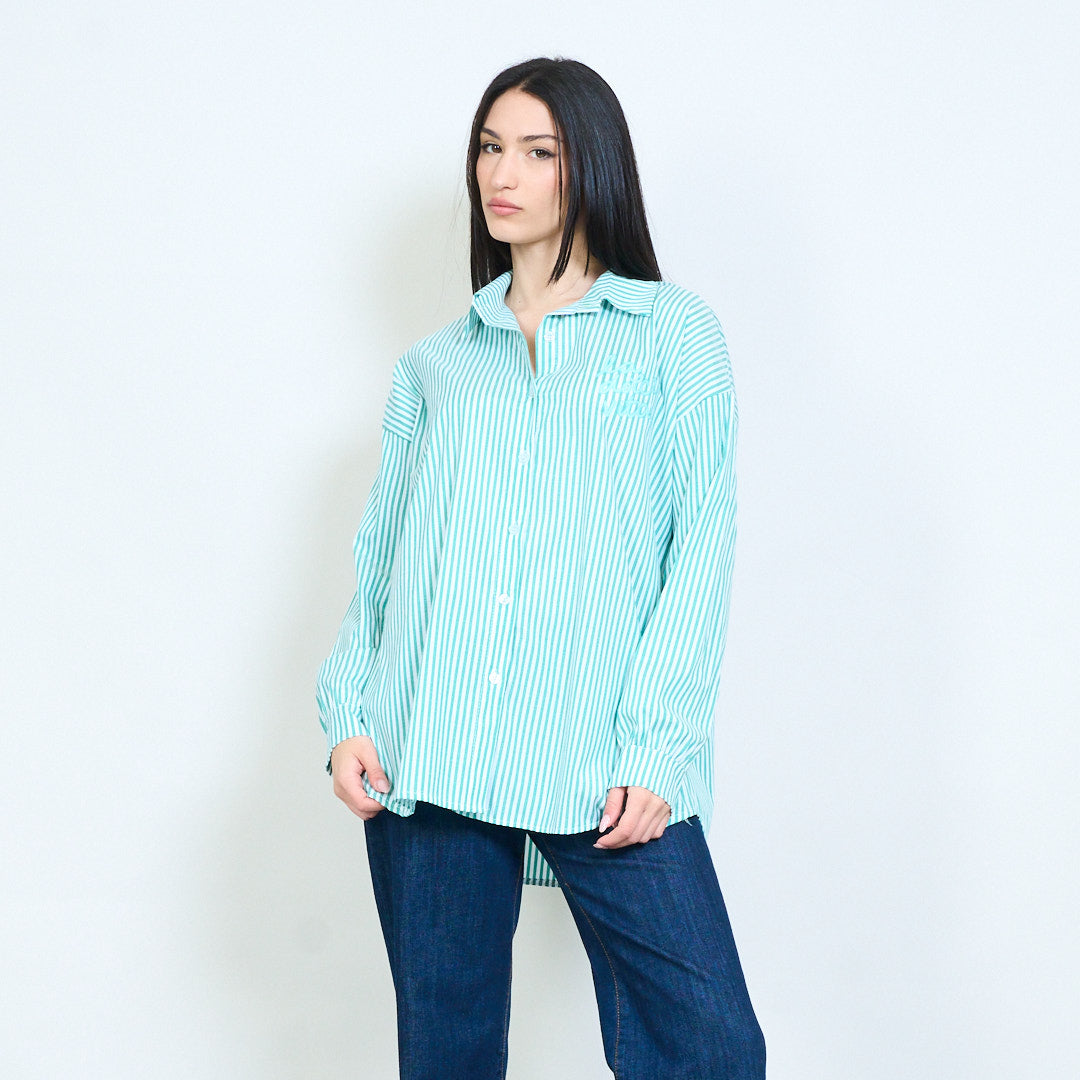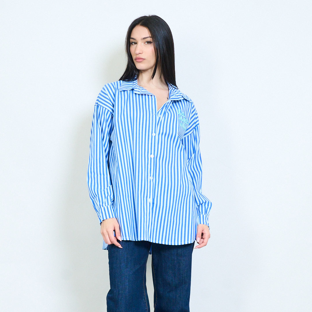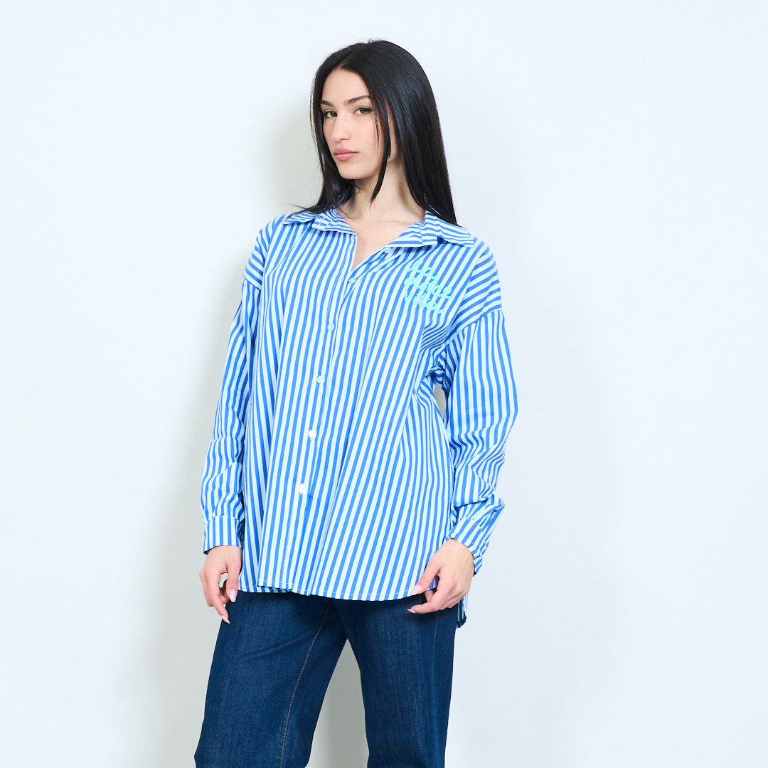 竖条纹柠檬图案“La dolce vita”印花超大衬衫衬衫批发