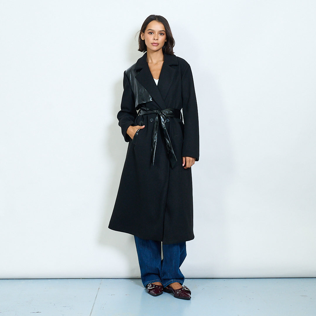 长期量身定制的外套,人造皮革肩膀和皮带批发