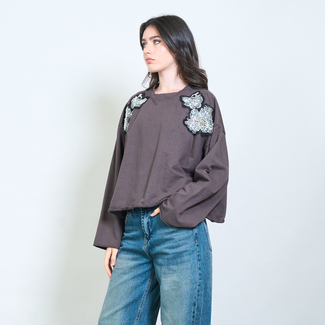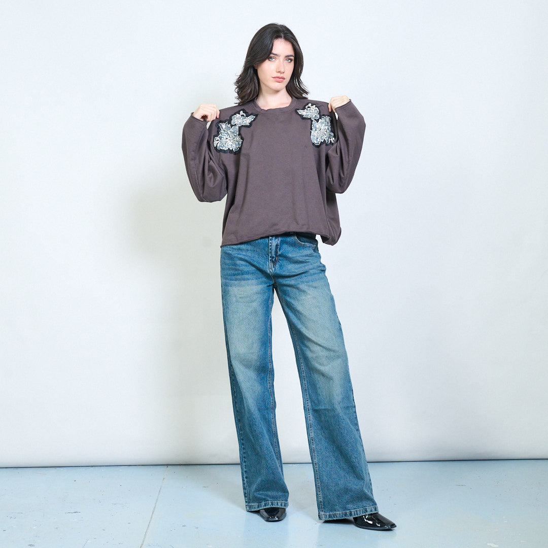 亮片花贴花运动衫批发