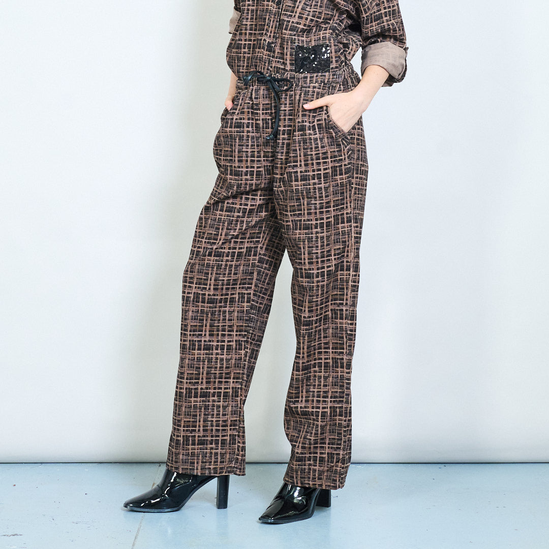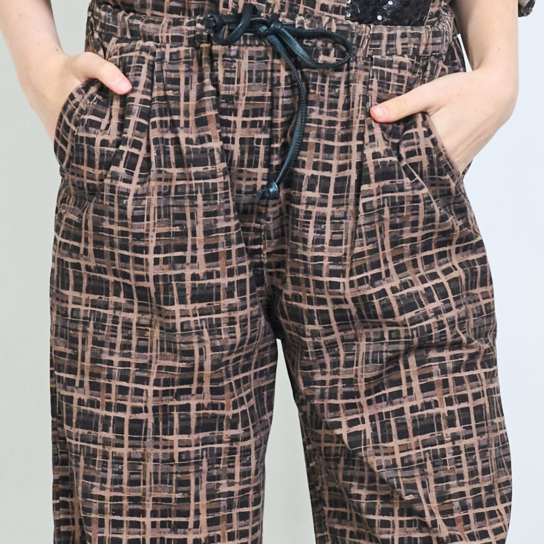 - 柔软的天鹅绒面料,带有棕色色调的几何网格图案
