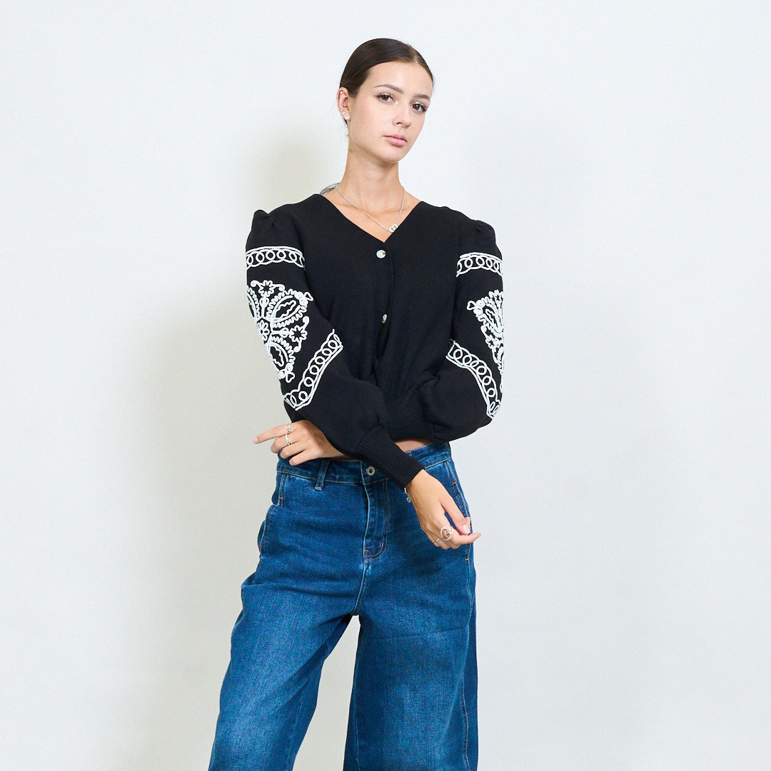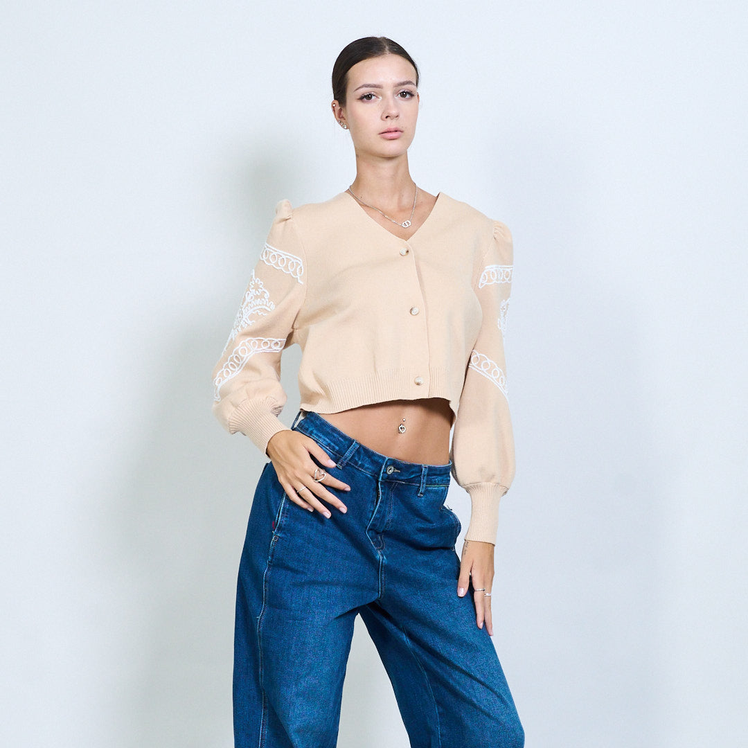 刺绣粉扑袖扣裁剪开衫批发