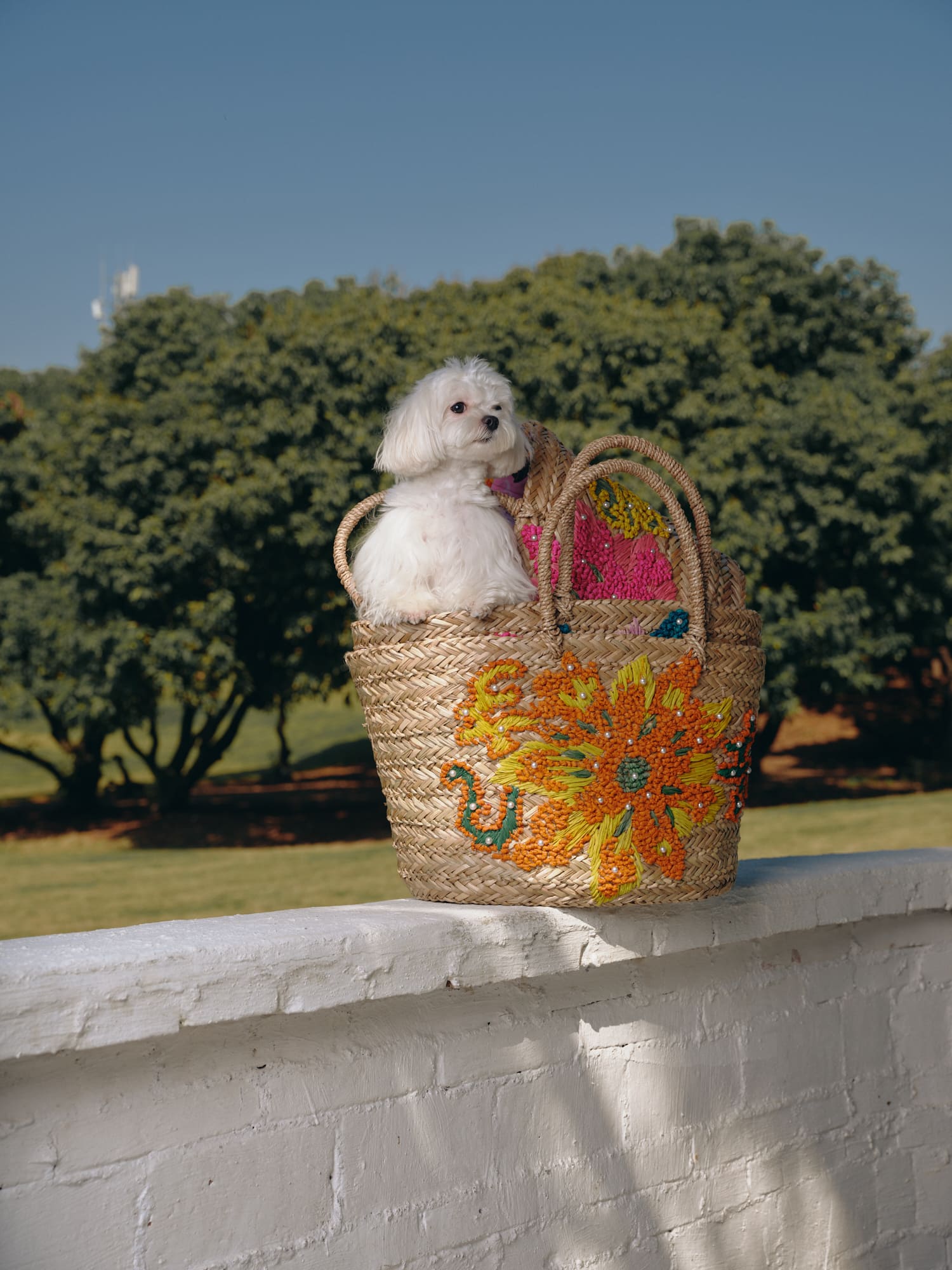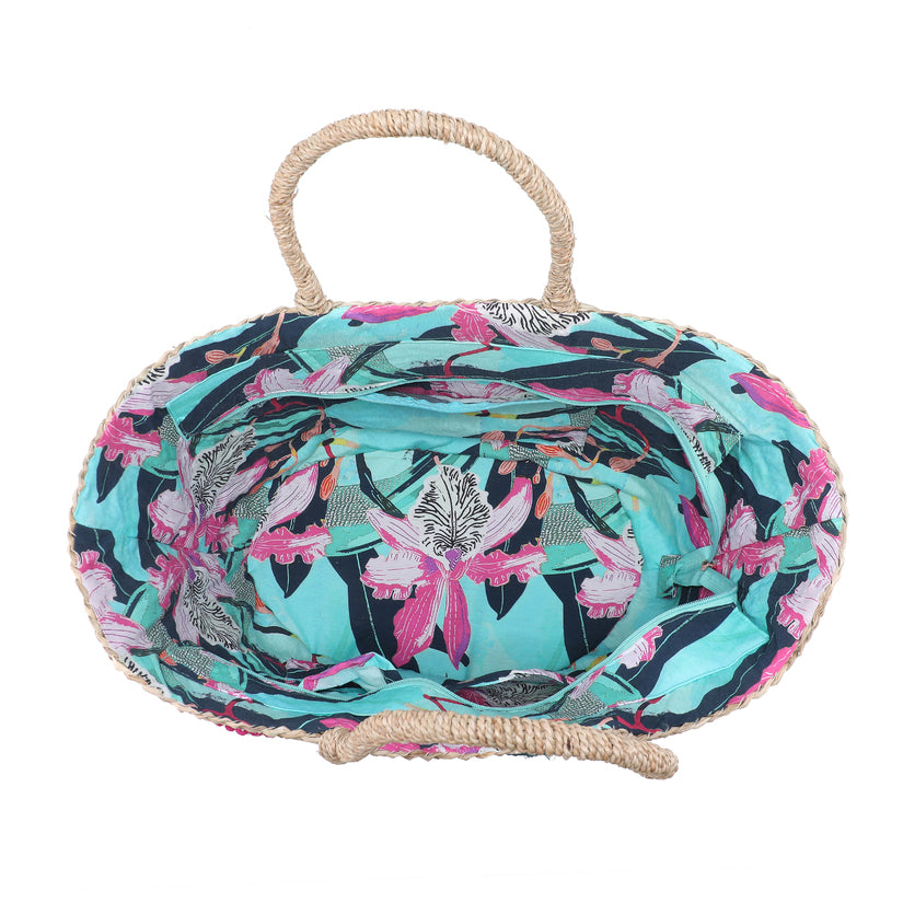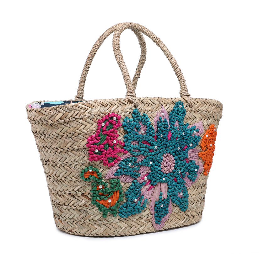 - 大胆的花朵Raffia刺绣带有复杂的串珠装饰