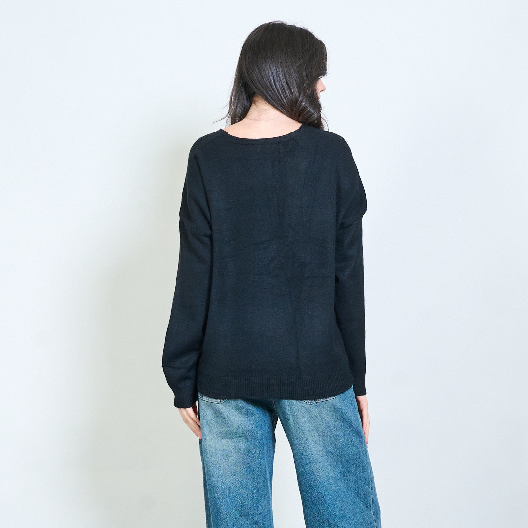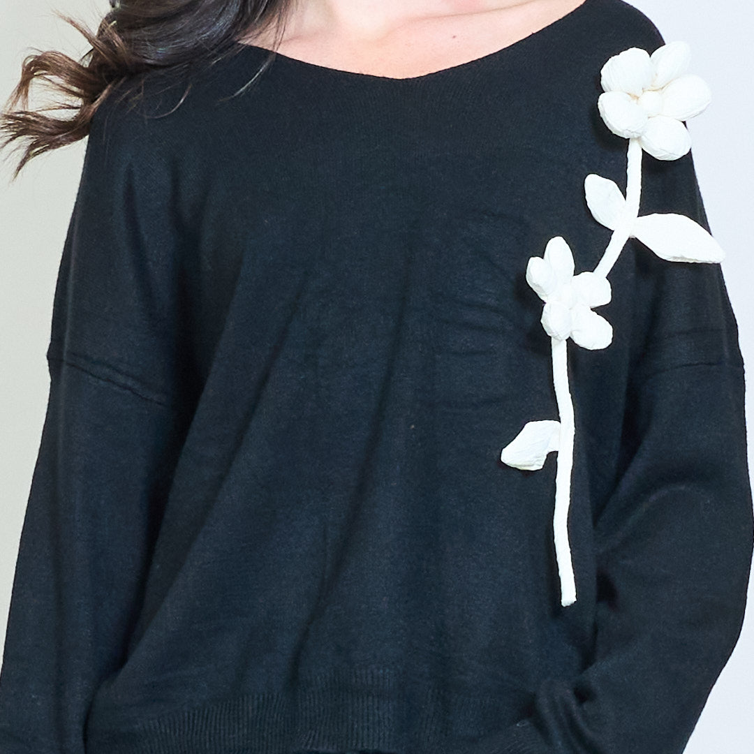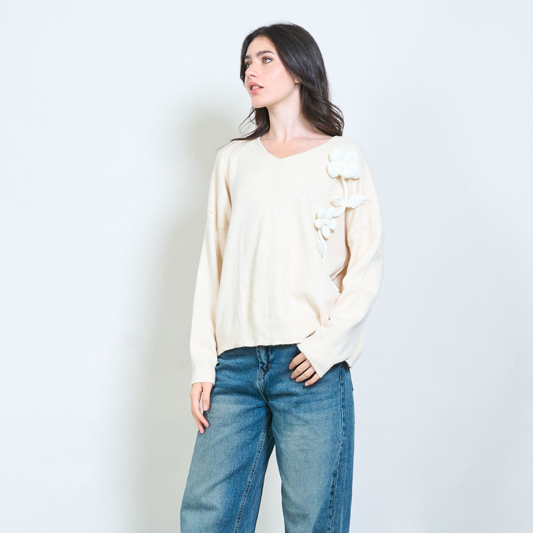 3D花贴花V领毛衣批发